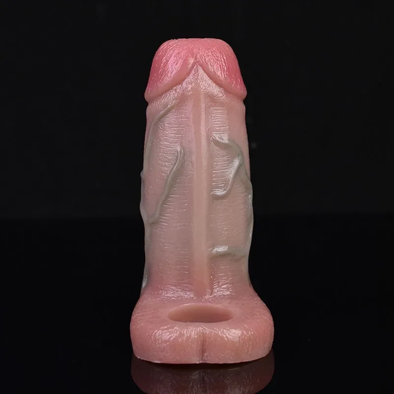 4.8 IN Open Tip Silicone Realistic Penis Sheath Lifelike Cock Sleeve